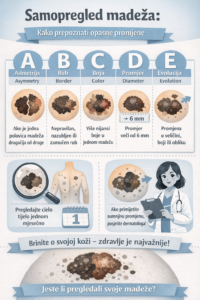 Samopregled pomaže, ali ne zamjenjuje pregled kod dermatologa. Ako ste primijetili promjenu, ne čekajte – pravovremeni pregled može biti ključan.